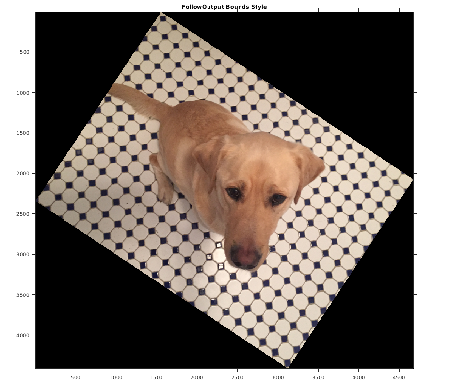 imwarp определяет значение пикселей в выходном изображении путем отображения местоположений в выходном изображении к соответствующим местоположениям во входном изображении (обратное отображение). imwarp интерполирует во входном изображении, чтобы вычислить значение выходного пикселя.