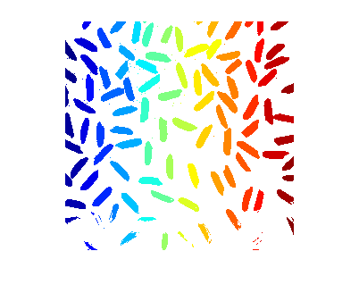 преобразует изображение метки, RGB = label2rgb(L)L в цветное изображение RGB в целях визуализации помеченных областей. label2rgb функция определяет цвет, чтобы присвоить каждому основанному на объектах на количестве объектов в матрице метки. label2rgb функционируйте цвета выборов из целой области значений карты цветов.