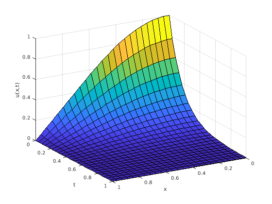 Интегрирование времени сделано с ode15s решатель. pdepe использует возможности ode15s для решения дифференциально-алгебраических уравнений, которые возникают, когда УЧП содержит эллиптические уравнения, и для обработки Якобианов с заданным шаблоном разреженности.