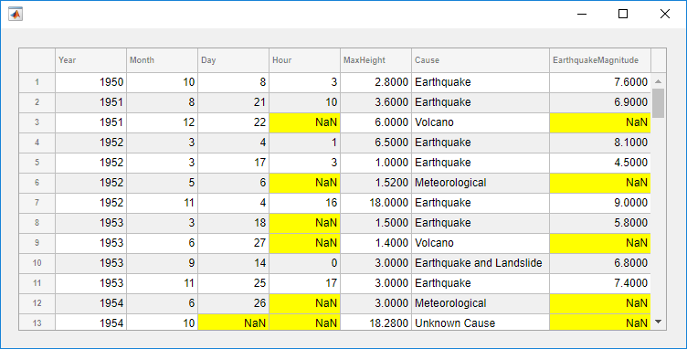 задает значения свойств компонента таблицы UI, использующего один или несколько аргументов пары "имя-значение".uit = uitable(Name,Value)