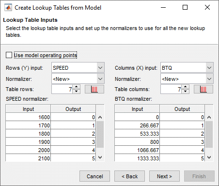 Если вы выбрали детальную модель, CAGE автоматически устанавливает флажок к Use model operating points для табличных нормализаторов. Можно снять флажок, если вы хотите выбрать различные нормализаторы.