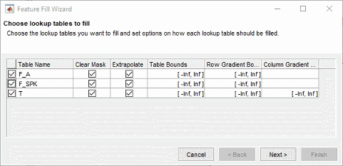 Используйте Мастер Заливки Функции, чтобы заполнить и оптимизировать значения в таблицах в отношении модели или данных. Можно заполнить несколько таблиц целиком с помощью мастера, и вы можете Fill от главного узла функции или от любой табличной вершины в функции. Используйте Fill в главном узле функции, чтобы калибровать целую функцию, то есть, заполнить все табличные значения путем обращения к модели.