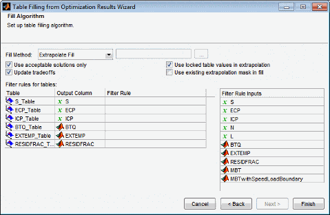 Можно теперь использовать этот набор данных (или любые результаты оптимизации), чтобы заполнить интерполяционные таблицы, как вы можете с любым набором данных.