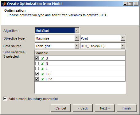 Выберите Tools> Create Optimization from Model (или нажмите кнопку на панели инструментов) открыть Создать Оптимизацию От мастера Модели.