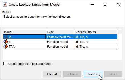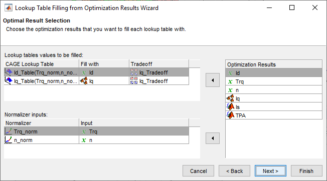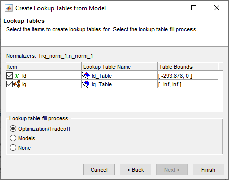 Используйте Интерполяционную таблицу, Заполняющую от Мастера Результатов оптимизации, чтобы заполнить Id_Table и Iq_Table таблицы.