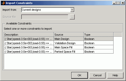 В диалоговом окне Import Constraints выберите, где вы хотите импортировать ограничения из.