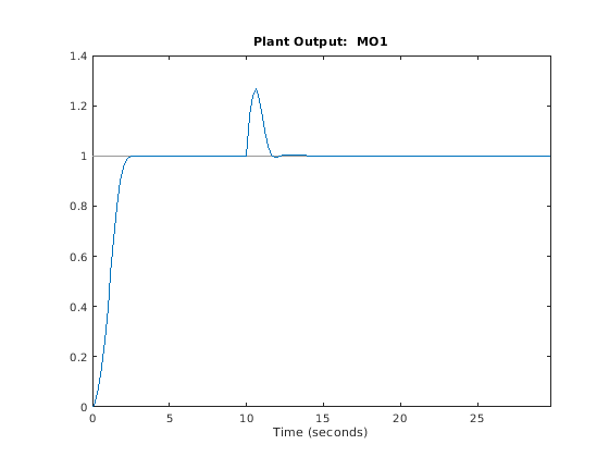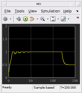 Tstop = 30; % simulation time Tf = round(Tstop/Ts); % number of simulation steps r = ones(Tf,1); % reference signal v = [zeros(Tf/3,1);ones(2*Tf/3,1)]; % measured disturbance signal