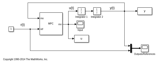 Для примера, который управляет двойным интегратором с неявным контроллером MPC, смотрите Управление Объекта с одним входом и одним выходом.
