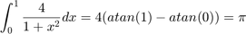 Мы аппроксимируем пи числовым интегралом 4/(1 + x^2) от 0 до 1.