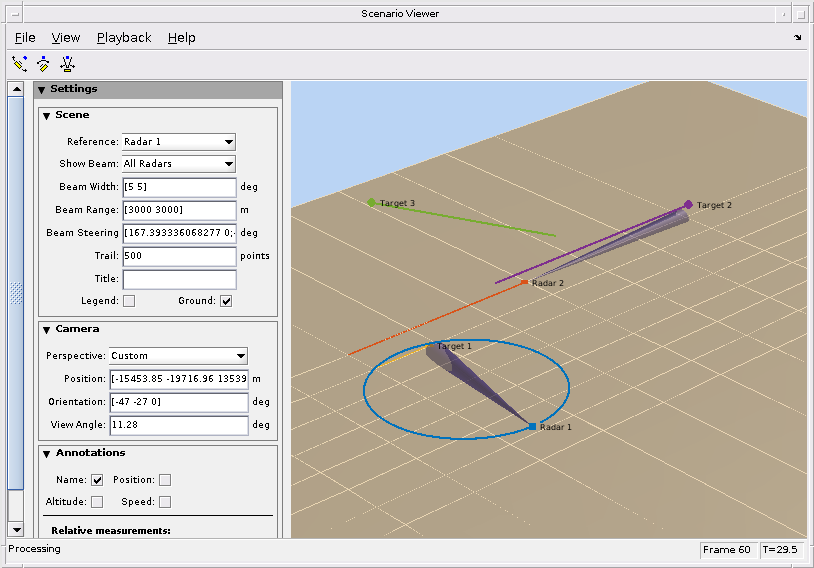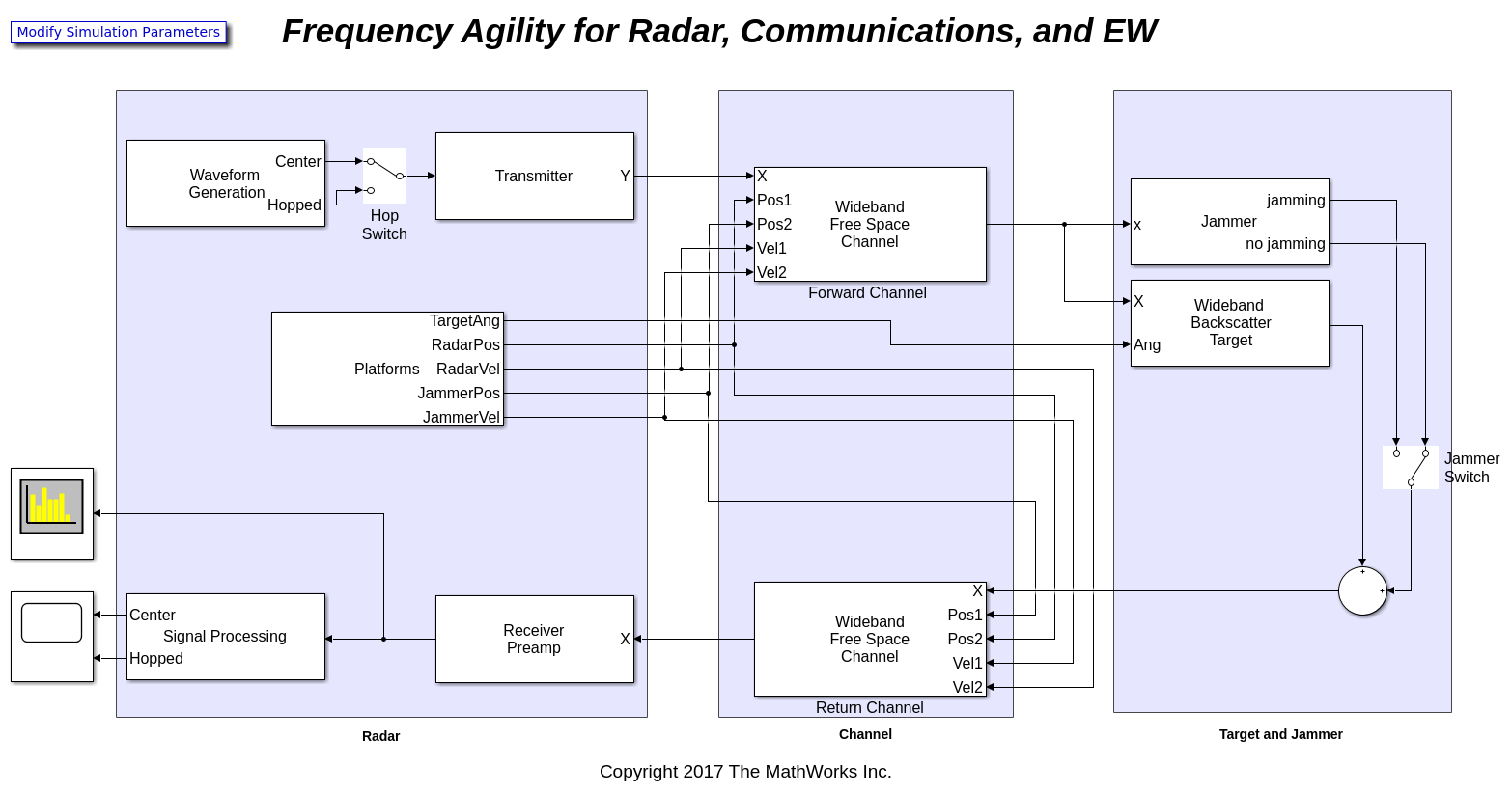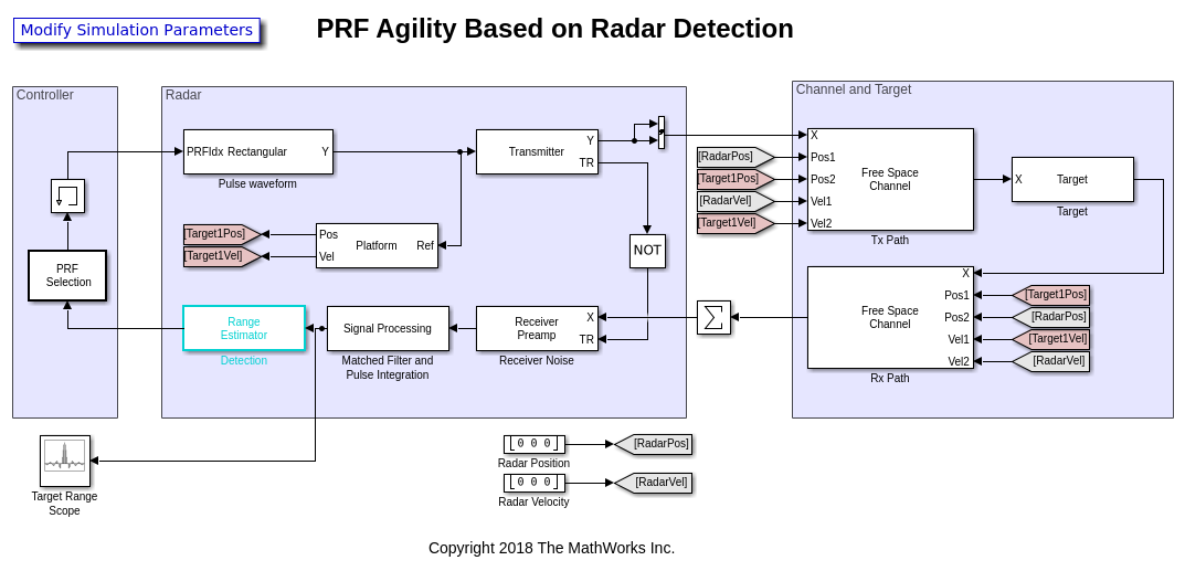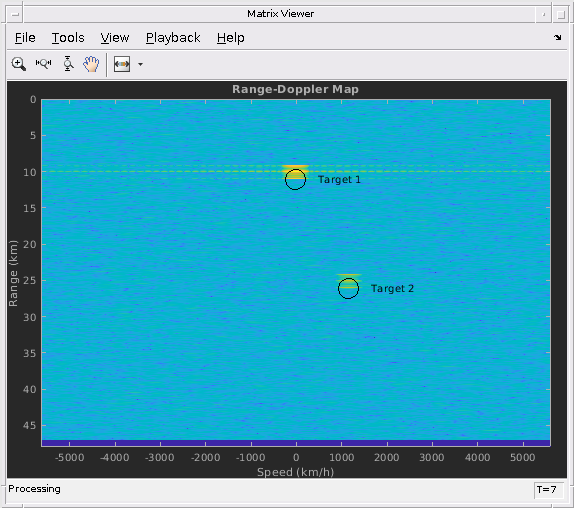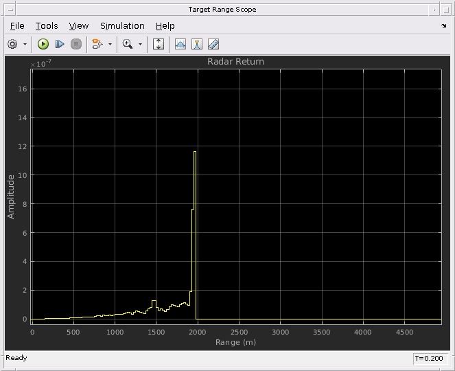 Смоделируйте находящуюся в stripmap систему Радара с синтезированной апертурой (SAR) с помощью Линейного FM (LFM) Форма волны. SAR является типом выглядящей словно стороны бортового радара, где достижимое разрешение перекрестной области значений намного выше по сравнению с действительным апертурным радаром. Изображение, сгенерированное с помощью SAR, имеет свои собственные преимущества, в основном, имеющие отношение к использованию активного датчика (радар) в противоположность обычным системам обработки изображений, использующим пассивный датчик (камера), которые используют окружающую подсветку, чтобы получить изображение. Поскольку активный датчик используется, система обеспечивает всепогодную производительность независимо от снега, вуали или дождя, например. Кроме того, конфигурируя систему, чтобы работать на различных частотах, таких как L-, S-или C-полоса может помочь анализировать различные слои на земле на основе различной глубины проникновения. Поскольку разрешение SAR зависит от сигнала и настройки антенны, разрешение может быть намного выше, чем для основанных на видении систем обработки изображений. Используя stripmap режим, этот пример выполняет и алгоритм миграции области значений [1] и аппроксимированную форму алгоритма задней проекции [2], чтобы отобразить стационарные цели. Аппроксимированная форма алгоритма задней проекции была выбрана для уменьшаемой вычислительной сложности, как обозначено в [3]. Линейная форма волны FM предлагает преимущество большого продукта пропускной способности времени в значительно более низкой степени передачи, делающей его подходящий для использования в бортовых системах.