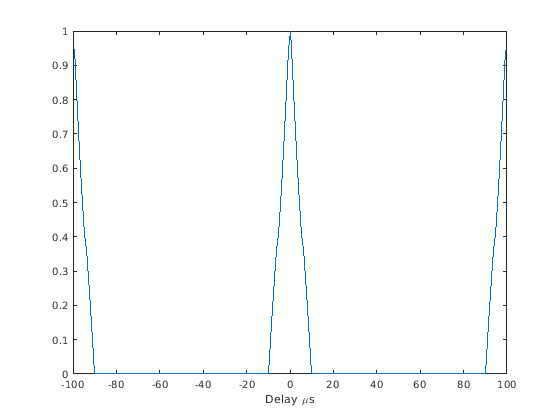 Использование эта функция анализирует ответ получателя корреляции к задержанной временем или переключенной Доплерами узкополосной периодической форме волны. Узкополосные периодические сигналы состоят из тонов CW, модулируемых периодическим комплексным конвертом. Эти типы сигналов обычно используются в радиолокационных системах, чтобы сформировать переданные последовательности импульсов.