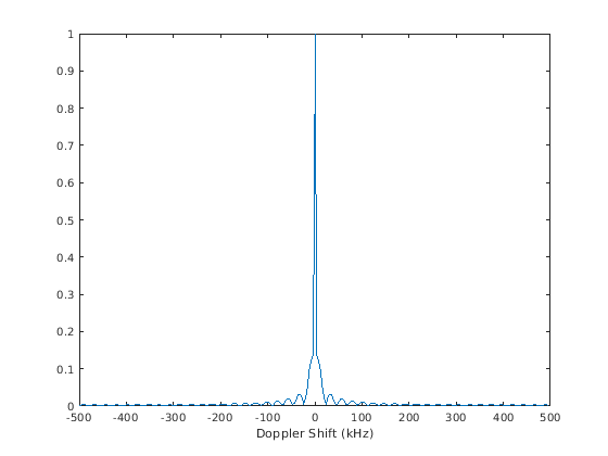 [pafmag,doppler] = pambgfun(___,'Cut','Delay') возвращает PAF, pafmag, вдоль сокращения нулевой задержки. doppler аргумент содержит соответствие вектора эффекта Доплера строкам pafmag.