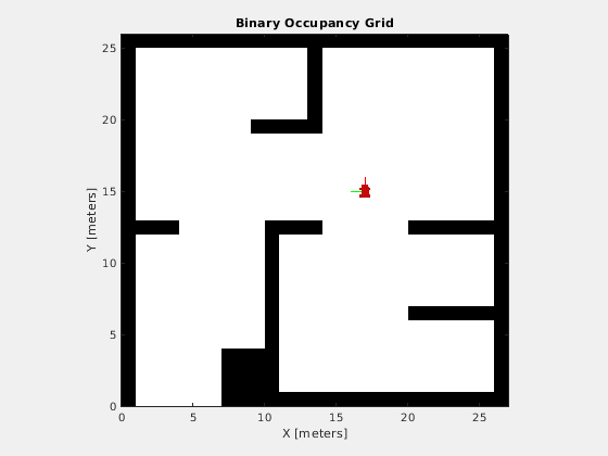 % Max speed parameters maxLinSpeed = 0.3; maxAngSpeed = 0.3; % Initial pose of the robot initX = 17; initY = 15; initTheta = pi/2;
