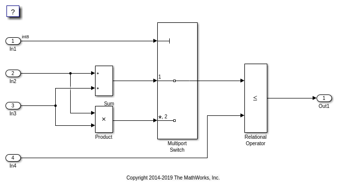 Корень импортирует In2, In3, и In4 задайте Inherit: Auto для параметров блоков Типа данных. Нисходящие блоки также используют наследованные типы данных.