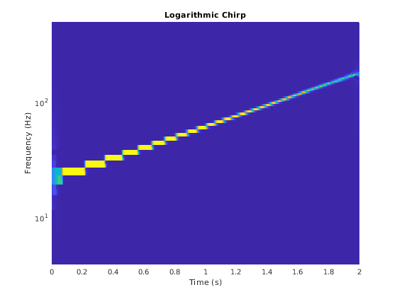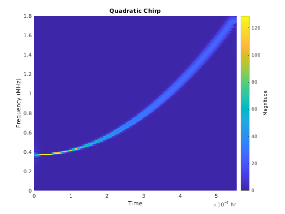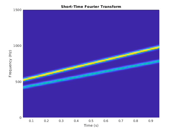 Synchrosqueezed преобразование Фурье основано на кратковременном преобразовании Фурье, реализованном в spectrogram функция. Для определенных видов неустановившихся сигналов synchrosqueezed преобразовывают, напоминает переприсвоенную спектрограмму, потому что она генерирует более резкие оценки частоты времени, чем обычное преобразование. fsst функция определяет кратковременное преобразование Фурье функции, f, с помощью спектрального окна, g и вычисления