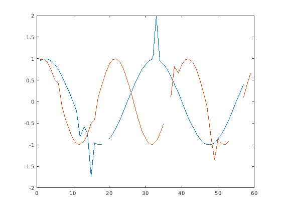 задает как y = medfilt1(___,nanflag,padding)NaN значения обработаны по каждому сегменту, с помощью любых входных параметров от предыдущих синтаксисов. Этот синтаксис также задает padding, тип фильтрации выполняемого в ребрах сигнала.