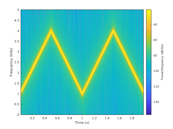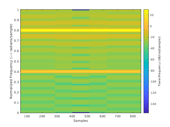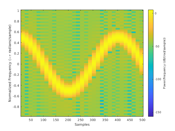 [___, также возвращает матрицу, ps] = spectrogram(___)ps, содержа оценку степени спектральной плотности (PSD) или спектр мощности каждого сегмента.