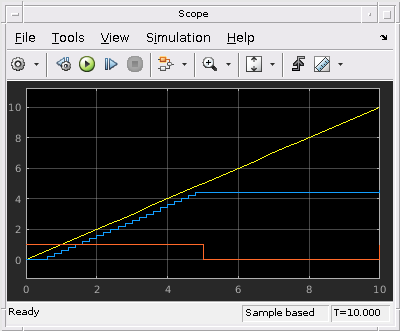 • Блок сконфигурирован для значения по умолчанию параметра Initial condition (0).