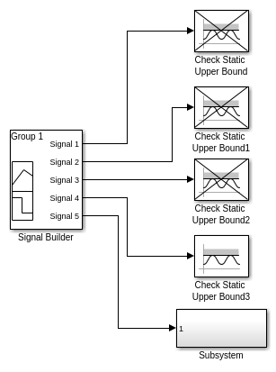 Check Static Lower Bound | Check Static Upper Bound | Scope | Signal Builder | Sine Wave