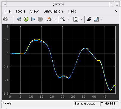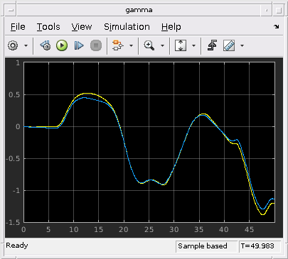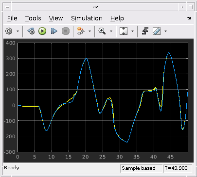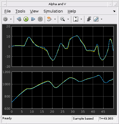 Выходные параметры регистрировались через их осциллографы (содержавший в блоке Compare Responses scdairframeLPV).