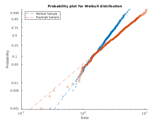 legend('Weibull Sample','Rayleigh Sample','Location','best')
