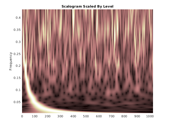 Если вы не задаете частоту дискретизации или период выборки, частоты построены в циклах на выборку. Если вы задаете частоту дискретизации, частоты находятся в Гц. Если вы задаете период выборки, scalogram построен как функция времени и периодов. Если входной сигнал является расписанием, scalogram построен как функция времени и частоты в герц и использует RowTimes в качестве основания для оси времени.