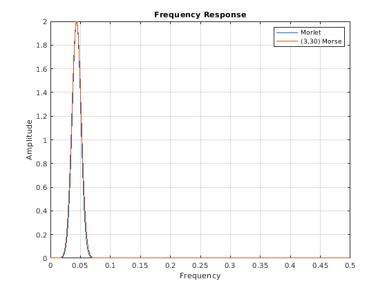 Используйте cwtfilterbank создать набор фильтров непрерывного вейвлета преобразовывает (CWT). Вейвлетом по умолчанию, используемым в наборе фильтров, является аналитический Морзе (3,60) вейвлет. Можно варьироваться пропускная способность времени и параметры симметрии для вейвлетов Морзе, чтобы настроить вейвлет Морзе для потребностей. Можно также использовать аналитический Morlet (Габор) вейвлет или ударить вейвлет. При анализе нескольких сигналов в частоте времени, для повышенной вычислительной эффективности, можно предварительно вычислить фильтры однажды и затем передать набор фильтров как вход к cwt. С набором фильтров можно визуализировать вейвлеты вовремя и частоту. Можно также создать наборы фильтров с определенной частотой или областями значений периода, и измерить пропускную способность на 3 дБ. Можно определить добротность для вейвлетов в наборе фильтров.