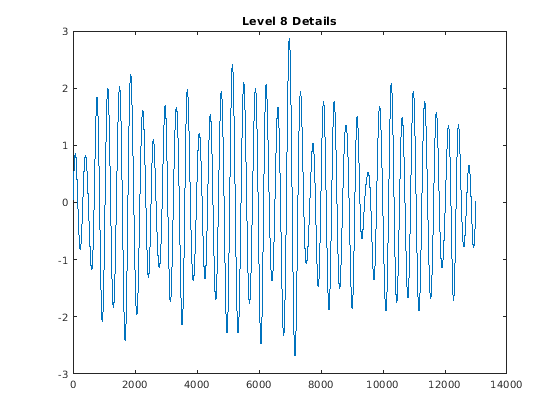 Сделайте подобный график с помощью коэффициентов MODWT в той же шкале. Обратите внимание на то, что функции не будут выровнены временем. MODWT не является фильтрацией нулевой фазы входа.