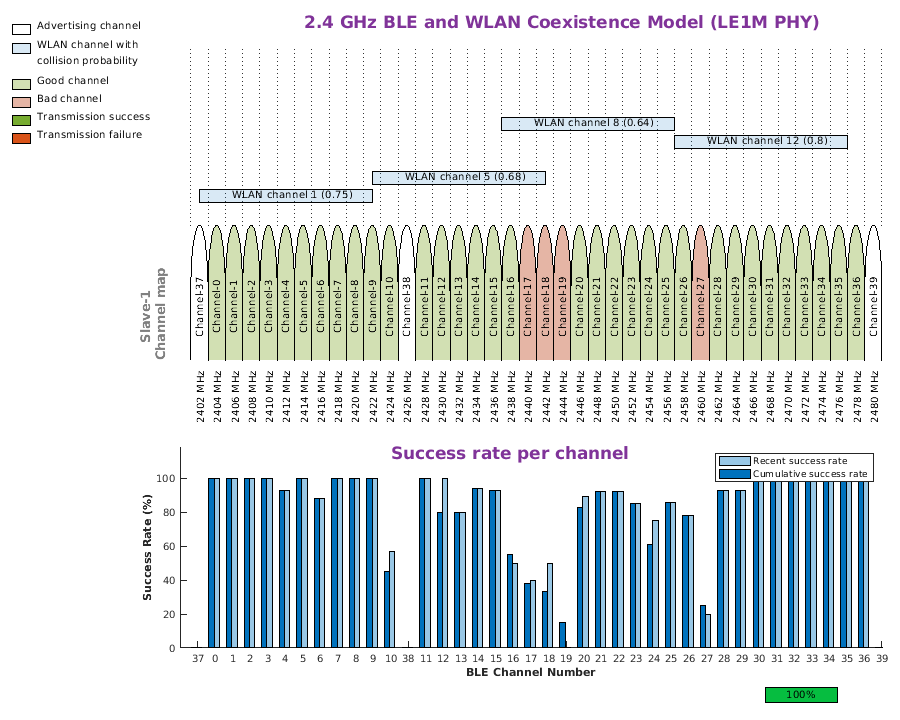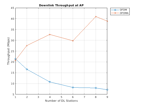 Линии связи модели симуляций уровня системы WLAN Toolbox™ с несколькими узлами. Симуляции действуют через стек протокола, который включает физический (PHY), среднее управление доступом (MAC) и прикладные уровни. Можно измерить количества, такие как пропускная способность, задержка, интерференция и пакетная потеря в узле и сетевых уровнях. Можно также исследовать сосуществование сигналов WLAN с сигналами Bluetooth® и повысить эффективность симуляции при помощи методов абстракции PHY.