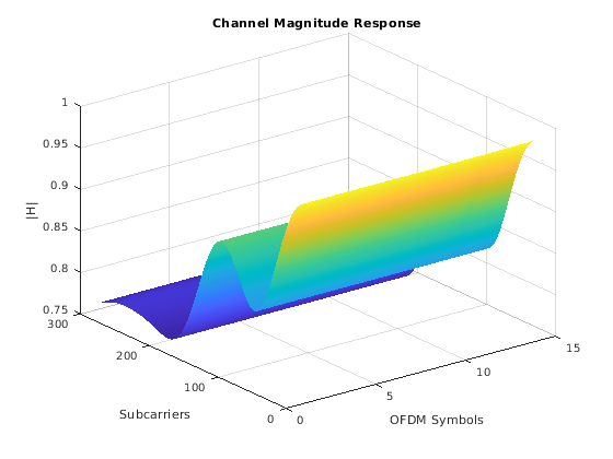 выполняет совершенную оценку канала. Функция сначала восстанавливает импульсную характеристику канала от усилений пути к каналу h = nrPerfectChannelEstimate(pathGains,pathFilters,nrb,scs,initialSlot)pathGains и путь фильтрует импульсную характеристику pathFilters. Функция затем выполняет демодуляцию ортогонального мультиплексирования деления частоты (OFDM) для nrb количество ресурса блокируется с поднесущей, располагающей с интервалами scs, и начальный номер слота initialSlot.