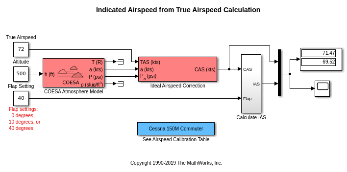 Блок COESA Atmosphere Model реализует математическое представление 1 976 Комитетов по Расширению Стандартной Атмосферы (COESA) стандарт, Соединенных Штатов понижает атмосферные значения для абсолютной температуры, давления, плотности и скорости звука для входной высоты геопотенциала.