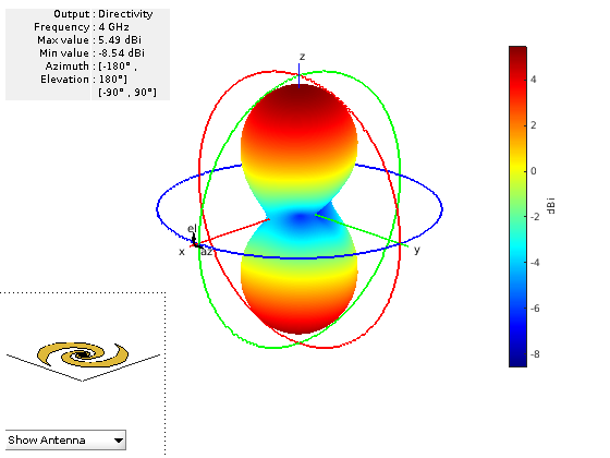 создает плоскую логарифмическую спираль в плоскости X-Y. По умолчанию антенна управляет по широкополосной частоте 4-10 ГГц.se = spiralEquiangular