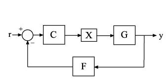 Управляющая структура включает ПИ-контроллер C и настраиваемый lowpass просачивается путь к обратной связи. Объект G система третьего порядка.