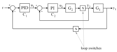 InnerCL = feedback(LS2*G2*C2,1); T0 = feedback(G1*InnerCL*C1,LS1); T0.InputName = 'r'; T0.OutputName = 'y1';
