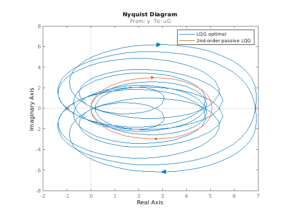 nyquist(-CLQG,-C2) legend('LQG optimal','2nd-order passive LQG')