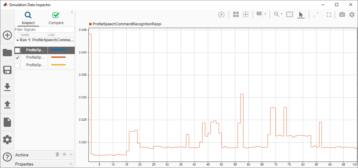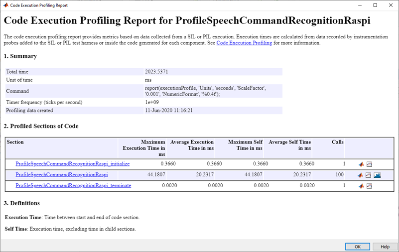 Позвольте профилировать и затем сгенерируйте код PIL. Файл MEX под названием ProfileSpeechCommandRecognition_pil сгенерирован в вашей текущей папке.