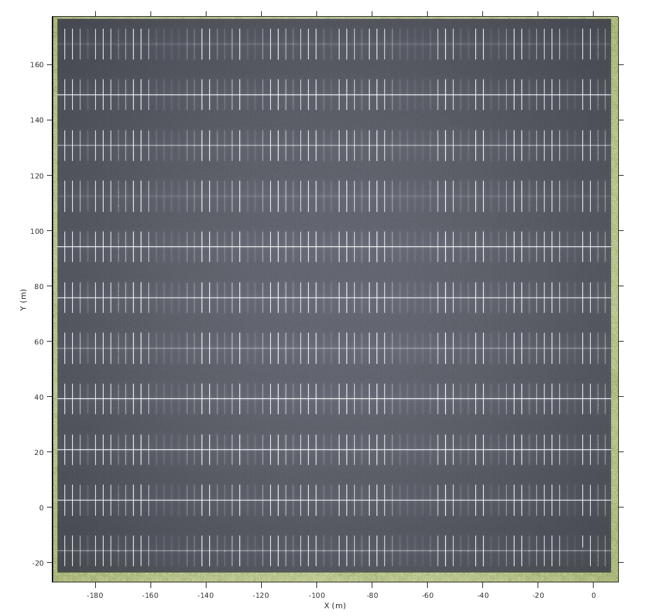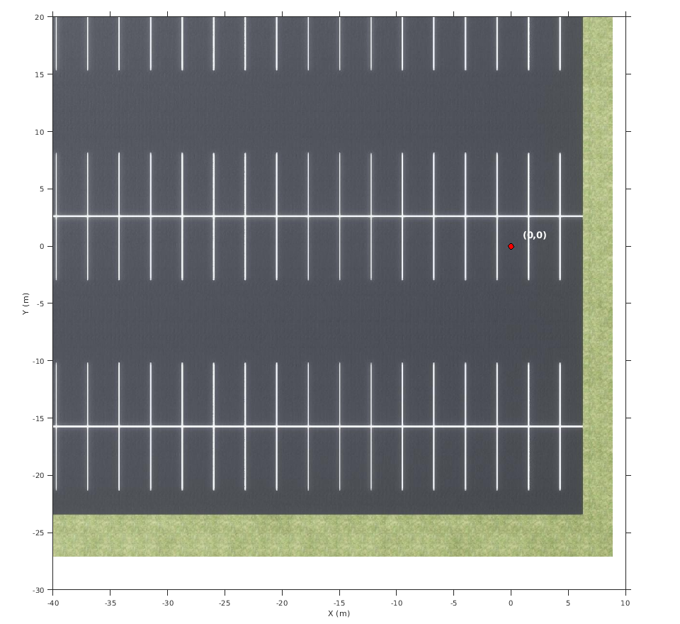 figure fileName = 'sim3d_ParkingLot.jpg'; I = imshow(fileName,spatialRef); set(gca,'YDir','normal') xlabel('X (m)') ylabel('Y (m)')