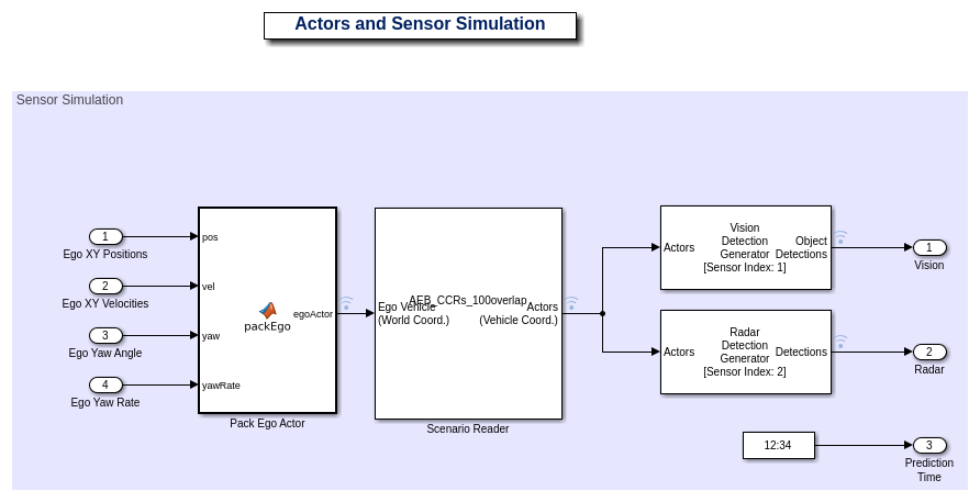 open_system('AEBTestBenchExample/Vehicle and Environment/Actors and Sensor Simulation')