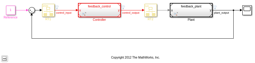 Сгенерируйте код контроллера для feedback_control.slx модель.