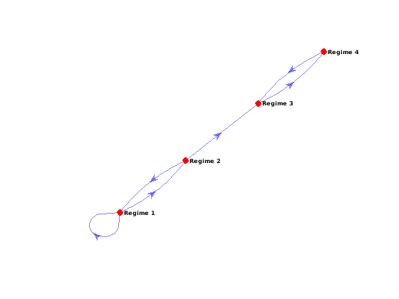 stateNames = ["Regime 1" "Regime 2" "Regime 3" "Regime 4"]; mc.StateNames = stateNames;