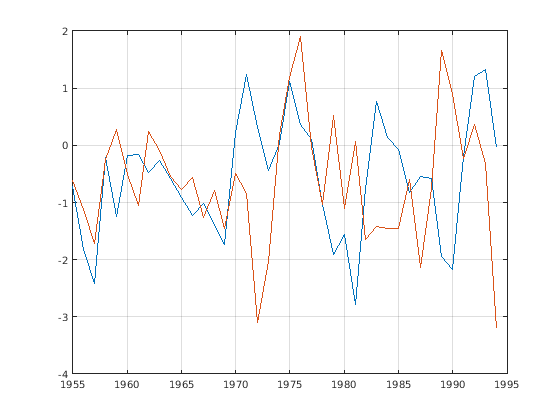 Временные ряды в Y может быть стационарным на уровнях или первых различиях (т.е. I (0) или I (1)). Вместо того, чтобы предварительно тестировать ряд на модульные корни (использование, e.g., adftest, pptest, kpsstest, или lmctest), процедура Йохансена формулирует вопрос в модели. Серия I (0) сопоставлена со стандартным единичным вектором в течение cointegrating отношений, и его присутствие может быть протестировано с помощью jcontest.