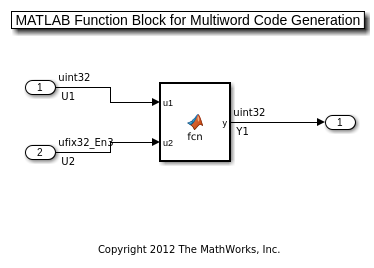 Пример блока MATLAB function ниже демонстрирует вычисление все-отдельного слова. Код многословный не ожидается.