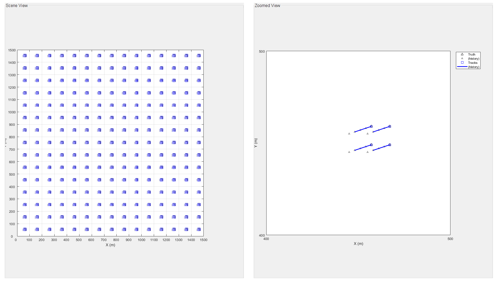 Можно создать мультиобъектные средства отслеживания, которые плавят информацию от различных датчиков. Используйте trackerGNN обеспечить одну гипотезу об отслеживаемых объектах. Используйте trackerTOMHT обеспечить несколько гипотез об отслеживаемых объектах. Используйте trackerJPDA присваивать несколько вероятных обнаружений отслеживаемым объектам. Используйте trackerPHD представлять отслеживаемые объекты с помощью функции плотности гипотезы вероятности (PHD). Используйте trackerGridRFS к отслеживаемым объектам с помощью основанного на сетке подхода доказательства заполнения. Используйте trackFuser плавить дорожки, сгенерированные путем отслеживания датчиков или средств отслеживания и архитектора, децентрализовало системы слежения.