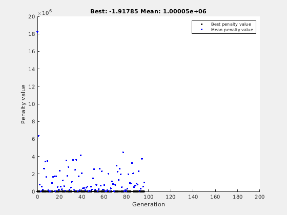 Optimization terminated: average change in the fitness value less than options.FunctionTolerance and constraint violation is less than options.ConstraintTolerance.