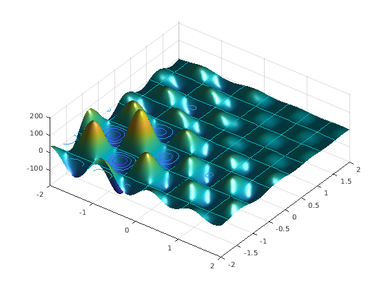 plotobjective(@shufcn,[-2 2; -2 2]);