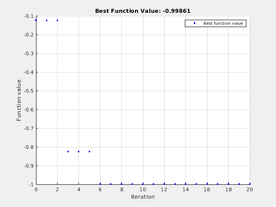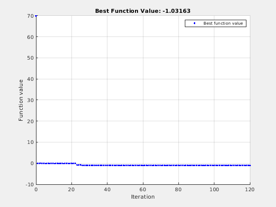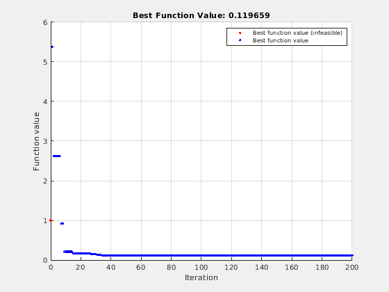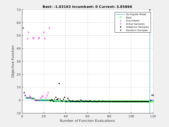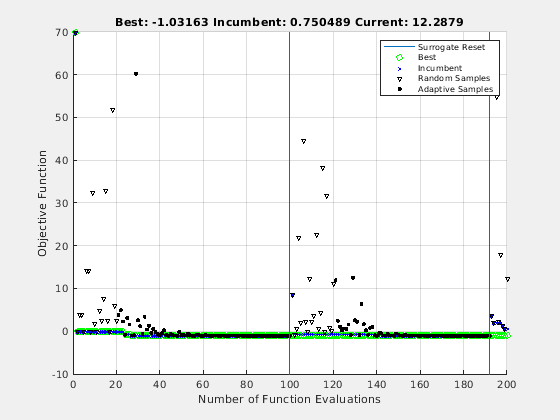 Продолжите от шага 3, пока все испытательные точки не будут в MinSampleDistance из оцененных точек. В то время сбросьте суррогат путем отбрасывания всех адаптивных точек от суррогата, сбросьте шкалу и вернитесь к шагу 1, чтобы создать MinSurrogatePoints новое случайное испытание указывает для оценки.