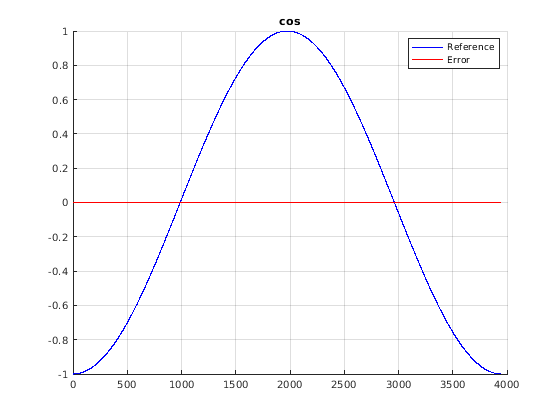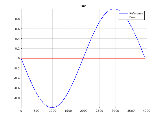 Вычислите ссылочный выход при помощи atan2 функция. Вы видите, что максимальная погрешность, наблюдаемая от результатов сравнения, вполне мала.