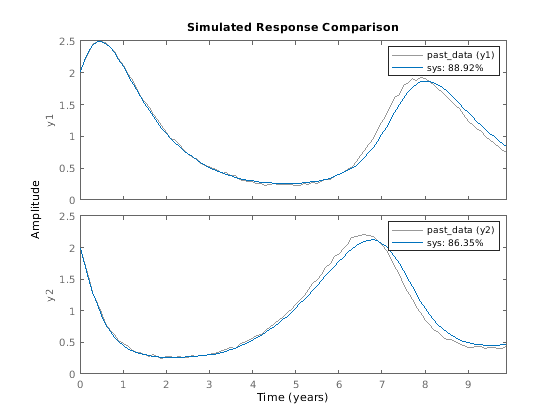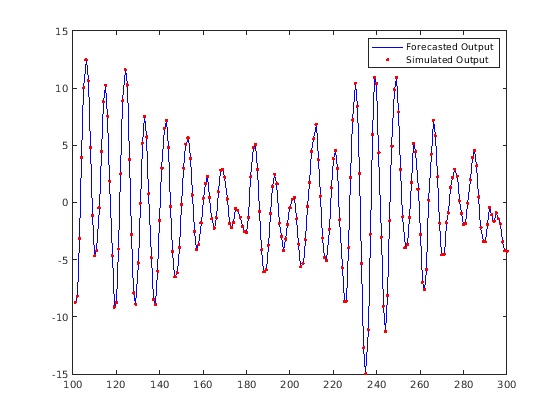 forecast выполняет предсказание в будущее, в области значений времени вне прошлого момента результатов измерений. В отличие от этого predict команда предсказывает ответ идентифицированной модели по отрезку времени результатов измерений. Использование predict определить, совпадает ли предсказанный результат с наблюдаемым ответом предполагаемой модели. Если sys хорошая модель предсказания, рассмотрите использование ее с forecast.