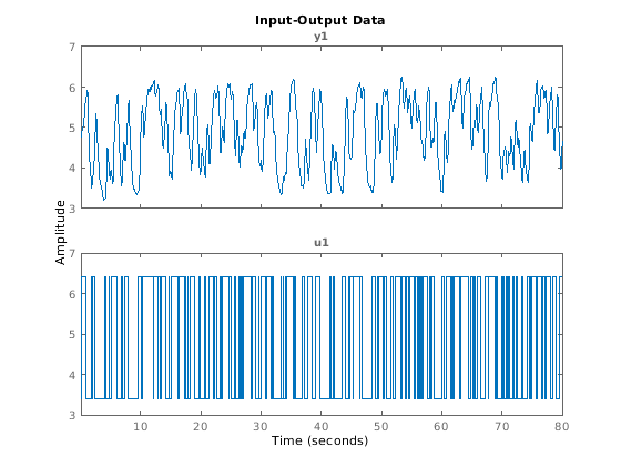 создает data = iddata(y,u,Ts)iddata объект, содержащий выходной сигнал временного интервала y и входной сигнал u. Ts задает шаг расчета экспериментальных данных.