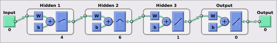 Средство оценки нелинейности нейронной сети задает нелинейную функцию , где F является многоуровневый feedforward (статическая) нейронная сеть, как задано в программном обеспечении Deep Learning Toolbox. y является скаляром, и x является m- размерный вектор-строка.